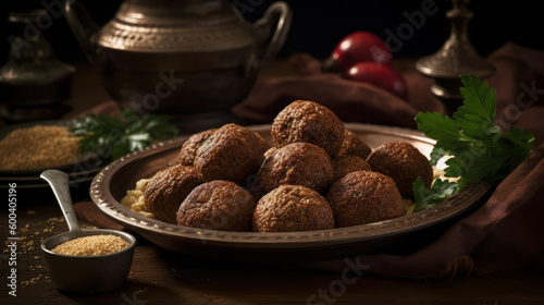 Kibbeh - Middle Eastern meatballs filled with spiced ground meat and onions. Generative AI Art Illustration