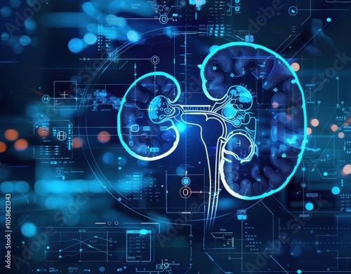 kidney testing results on digital interface on laboratory or surgical background, innovative technology in science and medicine concept. medical technology