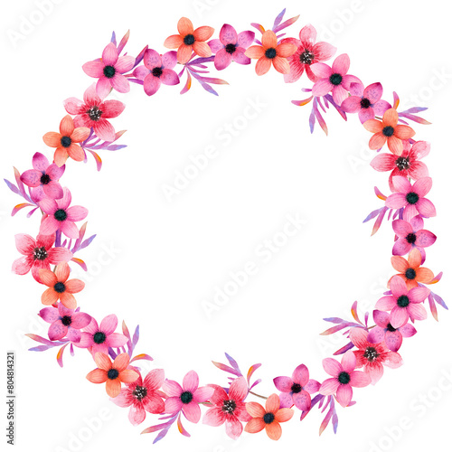 Kids birthday invitation, Bright Tropical Flowers, Hello summer, Leaves, Wreath, orchid, Round Frame, watercolor Illustration, Decoration, Mothers day, summer vibes, vibrant