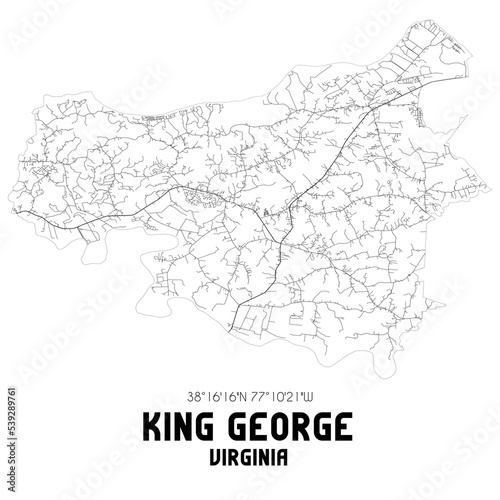 King George Virginia. US street map with black and white lines.