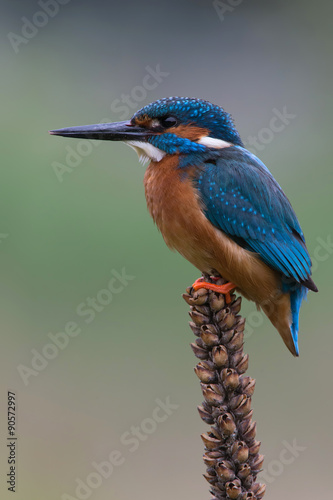 Kingfisher (Alcedo Atthis)/Kingfisher perched on large mullein seed head