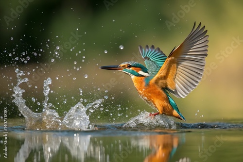 Kingfisher Bird Emerging from Water – Vibrant Blue & Orange Feathers in Action