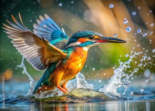 Kingfisher Diving for Fish: Stunning Action Shot of a Bird in Flight, Water Splash, Vibrant Colors, Wildlife Photography