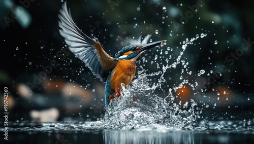 Kingfisher Diving into Water