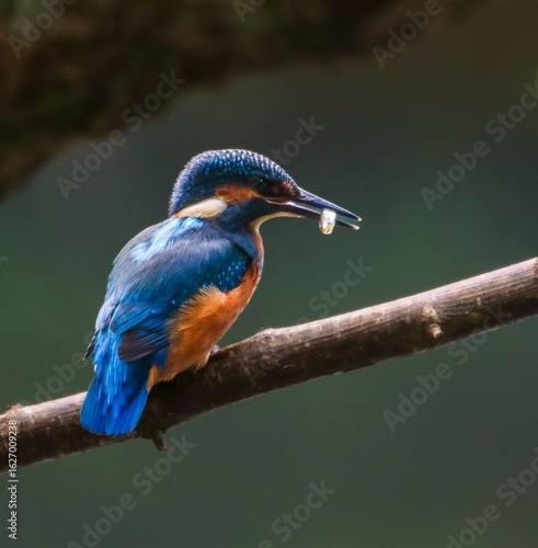 Kingfisher with Fish on Branch