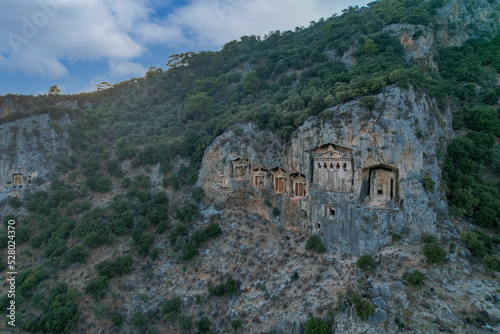 Kings tombs in the cliff face Kaunos Dalyan, Turkey.