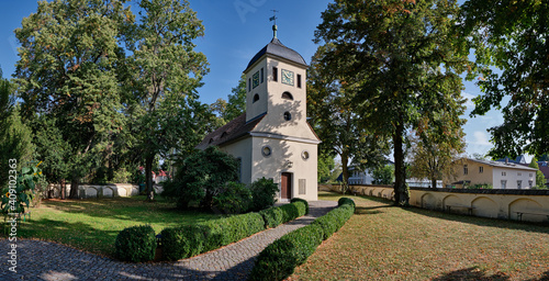 Kirchhof und denkmalgeschützte Dorfkirche Berlin-Kladow - Panorama aus 8 Einzelbildern