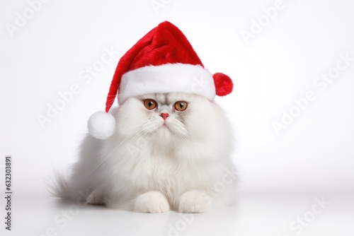 Kitten wearing santa hat on white background with copy space. AI Generated