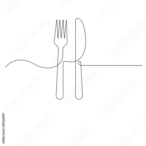 Knife and fork continuous one line drawing of outline vector illustration