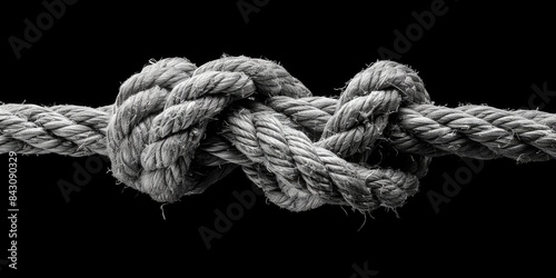 Knotted Rope. Isolated Cord with Tied Knot on Nautical Texture