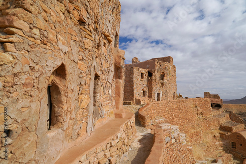 Ksar Chenini,governatorato di Tataouine, Tunisia, resti del tipico villaggio fortificato Berbero composto da granai e abitazioni costruiti all'interno di un muro di cinta difensivo.Tatoaine, Tunisia