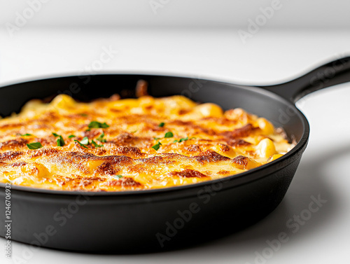 Käsige Mac and Cheese mit knuspriger Kruste in einer gusseisernen Pfanne