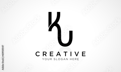 KU Letter Logo Design Vector Template. Alphabet Initial Letter KU Logo Design With Glossy Reflection Business Illustration.