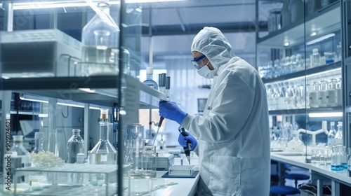 Lab discovery concept with scientists working on breakthrough innovations in a research lab
