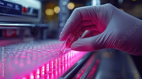 Lab technician handling a test tube in a scientific setting.