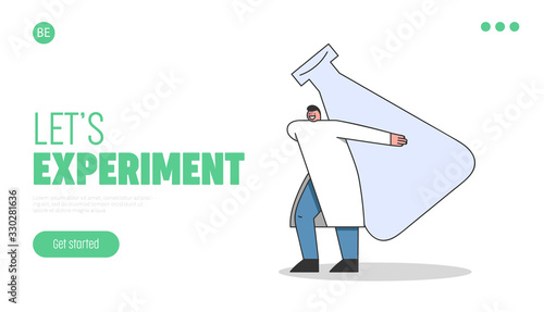 Laboratory Exploring And Experiments Concept. Website Landing Page. Laboratory Technician Is Preparing Tools For Chemical Experiment. Web Page Cartoon Linear Outline Flat Style. Vector Illustration