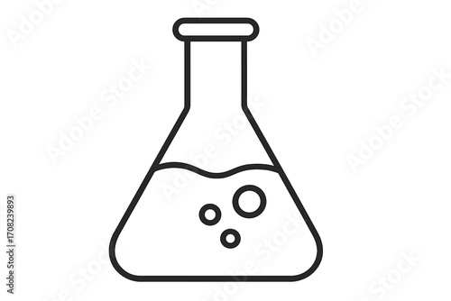 Laboratory flask outline vector symbol with liquid and bubbles, chemistry icon for graphic design, web apps, adverts, education, science cards, transparent background
