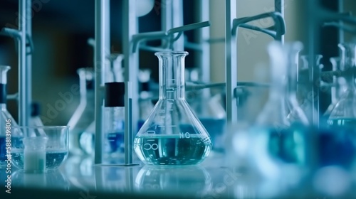 Laboratory Research - Scientific Glassware For Chemical Background. Generative AI