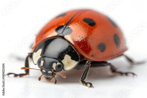 Ladybug's Delight: A striking macro photograph captures the intricate beauty of a vibrant ladybug, showcasing its iconic spotted shell and delicate features, a symbol of luck and natural wonder.