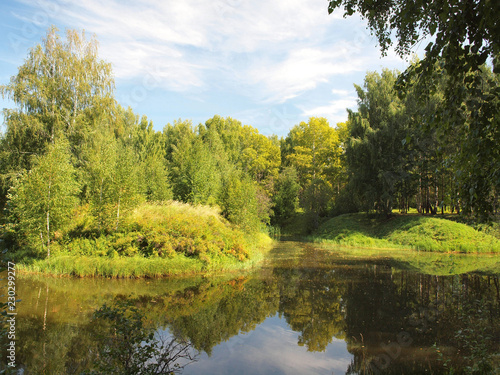 Lake in the park. Russian summer nature. Russia, Ural, Perm region