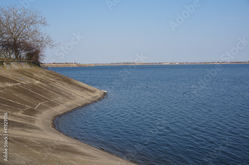 Lake Morii with blocks in the background, Bucharest, Romania.