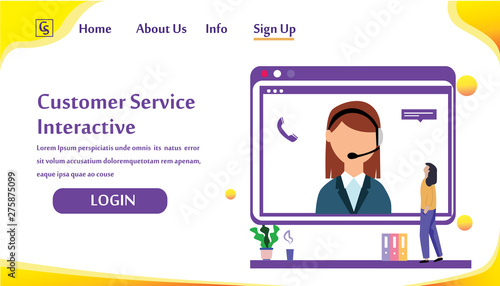 Landing Page Website Customer Service Interactive , Call Center for online Shopping and Business Concept Vector Template Design Illustration