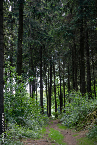 Landscape of a beautiful forest in Bielefeld with green trees and leaves. Germany