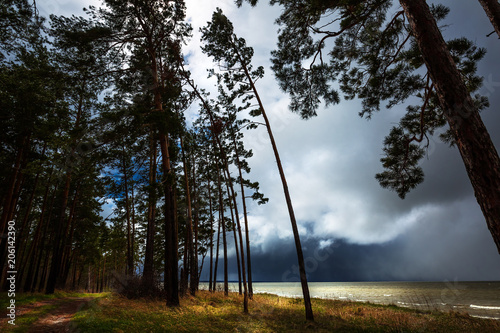 Landscape, river during a storm. Ob river, Novosibirsk region, Siberia