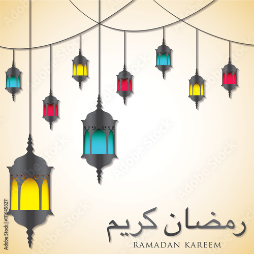 Lantern "Ramadan Kareem" (Generous Ramadan) card in vector format.