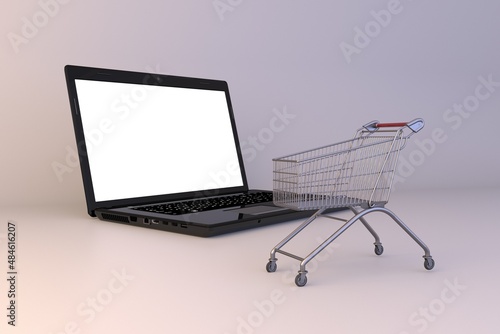 lapltop food shooping cart mocup for web site