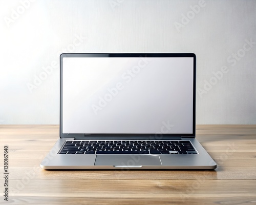 Laptop blank screen on wood table with coffee cafe background, mockup, template for your text, Clipping paths included for background and device screen