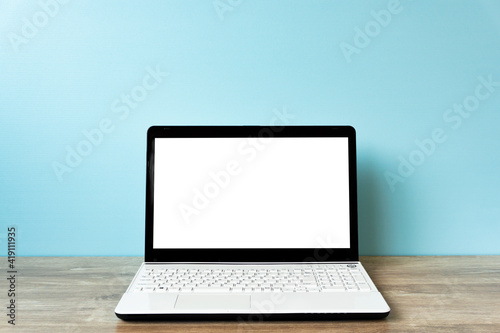 Laptop computer and blank screen in one of a desk. デスクのノートパソコンとブランクの画面