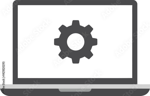 Laptop Gear: A clean, uncluttered view of a modern laptop with a gear icon on its screen, an emblem of settings, functionality, and digital progress.
