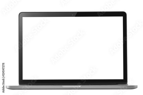Laptop isolated on white with blank screen and clipping path