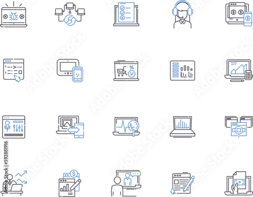 Laptop notebook outline icons collection. laptop, notebook, computer, portable, lightweight, slim, performance vector and illustration concept set. processor, RAM, storage linear signs