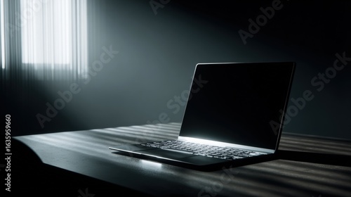Laptop on Desk Illuminated by Window Light, Mockup Display for Business or Creative Presentation
