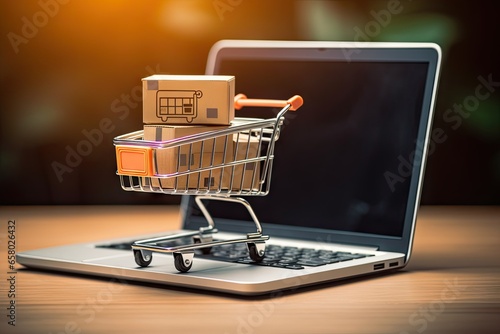 laptop on table. Online shopping. Adding to cart in digital marketplace. E commerce delight. World of products at fingertips. Retail therapy. Exploring virtual store. Fast and convenient