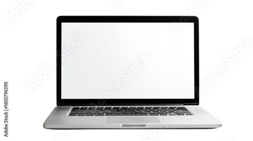 Laptop on white isolated background, perfect for business and tech-related designs.