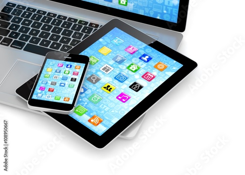 Laptop, phone and tablet pc. 3d rendering.