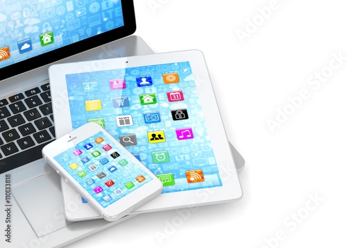Laptop, phone and tablet pc. 3d rendering.