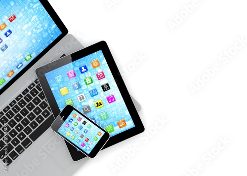 Laptop, phone and tablet pc. 3d rendering.