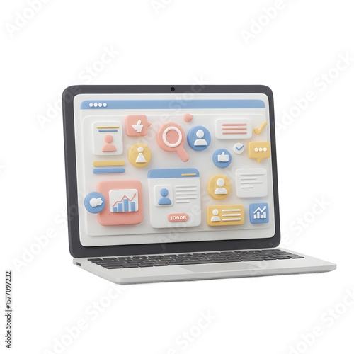 Laptop showing various icons related to services on internet for online usage.