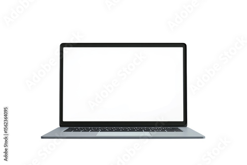 Laptop with a blank screen on a white isolated on a transparent background in PNG format.