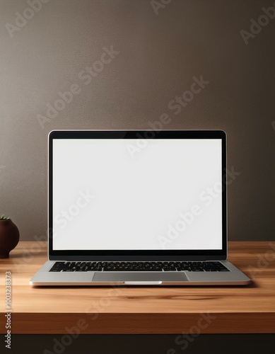 Laptop with blank screen on desk