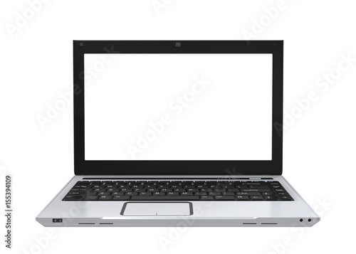 Laptop with Blank White Screen Isolated