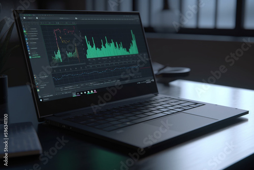 Laptop with financial charts and reports, Generative AI