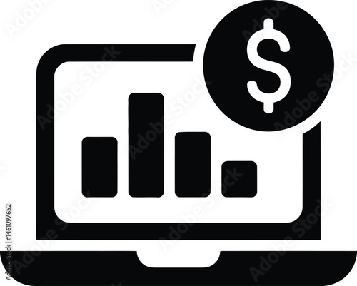 Laptop with graph icon, concept illustration, glyph symbol, vector flat sign.