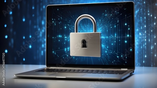 laptop with virtual padlock, privacy protection, network security, and data privacy concepts.