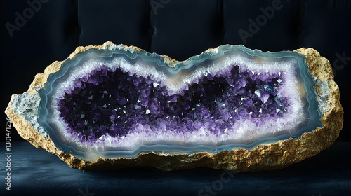 Large amethyst geode on dark velvet