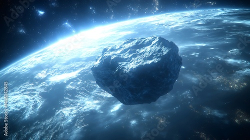 Large asteroid approaching earth in outer space